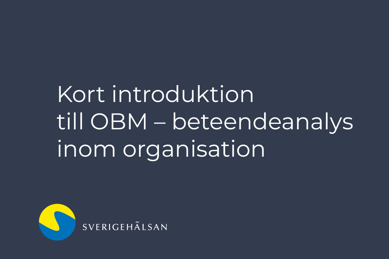 Kort introduktion till utbildningen OBM – beteendeanalys inom organisation på Sverigehälsan. Med Johan Waara, leg. psykolog och utbildare.